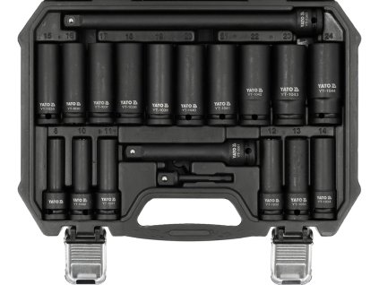 YATO Gola ořechy šestihranné kované prodloužené 1/2" sada 19 kusů 8-24mm + nástavce