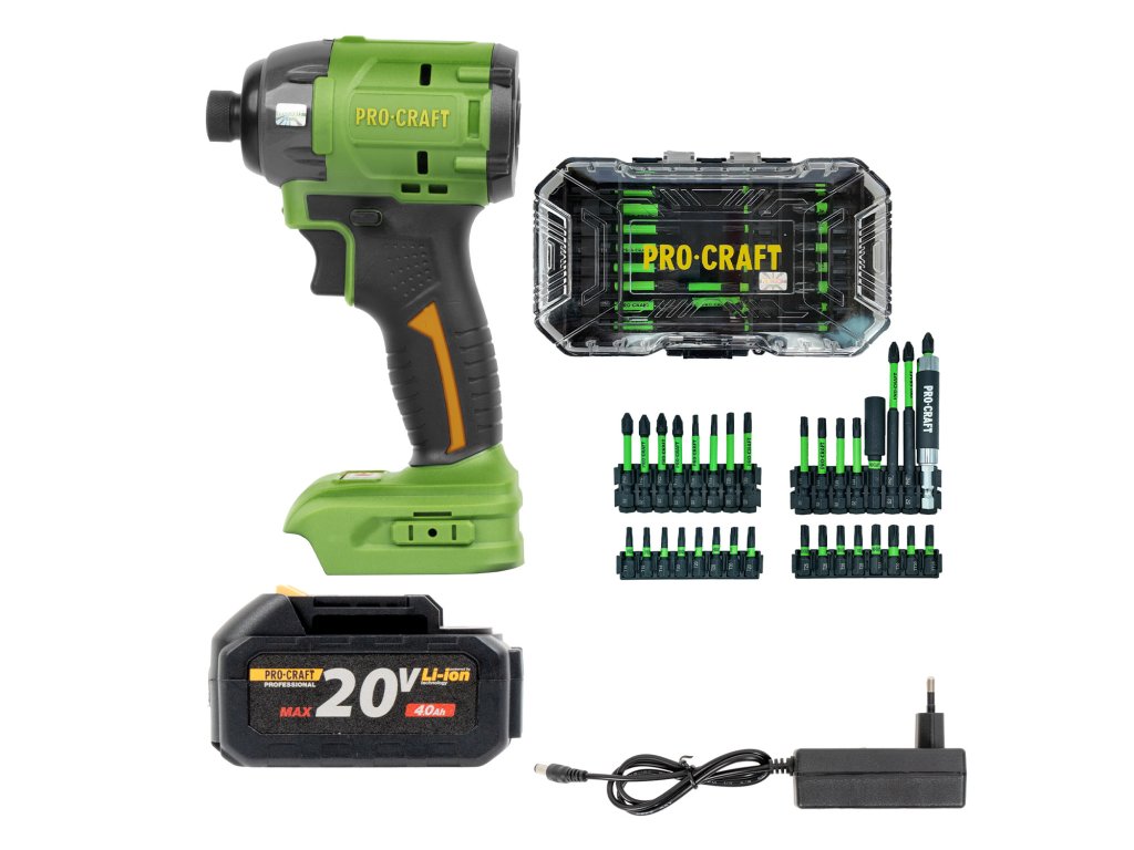 Baterie a nabíječka nejsou součástí balení. Utahovák je kompatibilní s univerzální 20V baterií Procraft, kterou lze využít i pro další nářadí této řady.