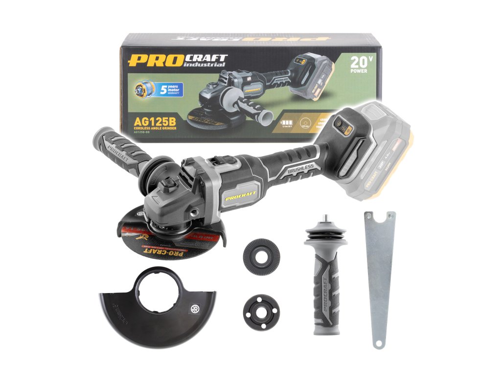 Aku úhlová bruska Procraft Industrial AG125B (bez baterie a nabíječky)