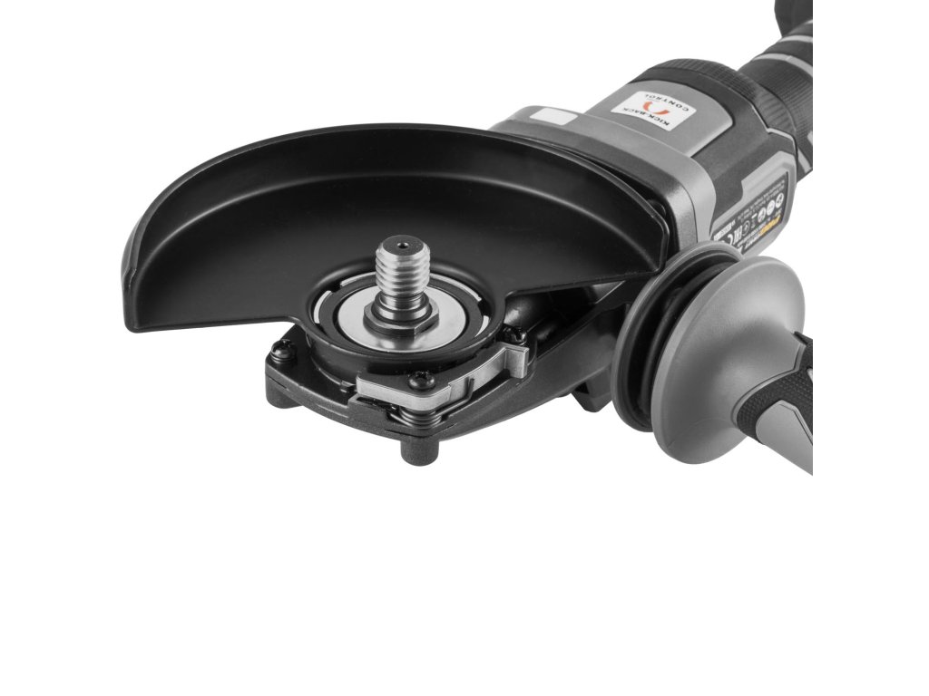 Kickback Control (Ochrana proti zpětnému rázu). Kickback Control je inovativní bezpečnostní funkce, která minimalizuje riziko nebezpečného zpětného rázu brusky. K zpětnému rázu dochází, když se brusný nebo řezný kotouč náhle zasekne v materiálu, což může způsobit nekontrolované vytržení nářadí z rukou uživatele. Systém Kickback Control v takové situaci okamžitě rozpozná zablokování kotouče a automaticky vypne motor.
