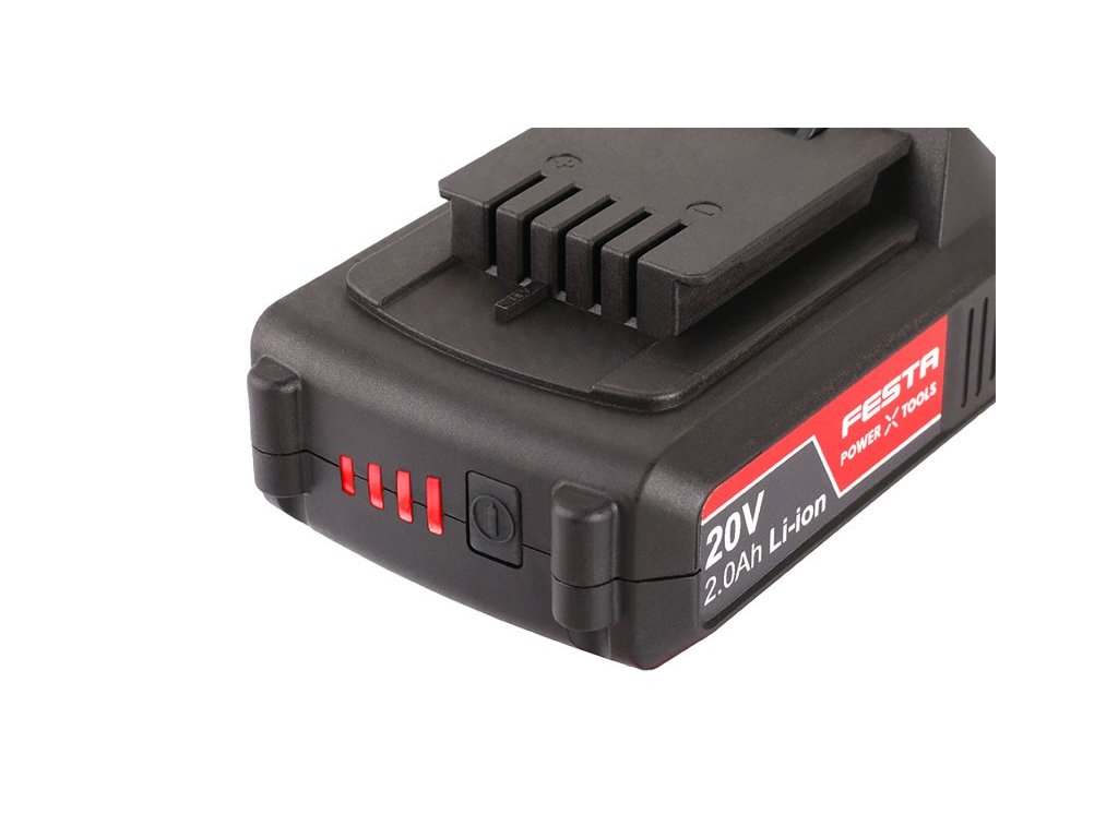- Li-ion technologie použitá v bateriích FESTA Power x tools nabízí možnost dobíjet baterie kdykoliv - bez snižování jejich kapacity, u Li-ion baterií také dochází k jen velmi pomalému samovybíjení