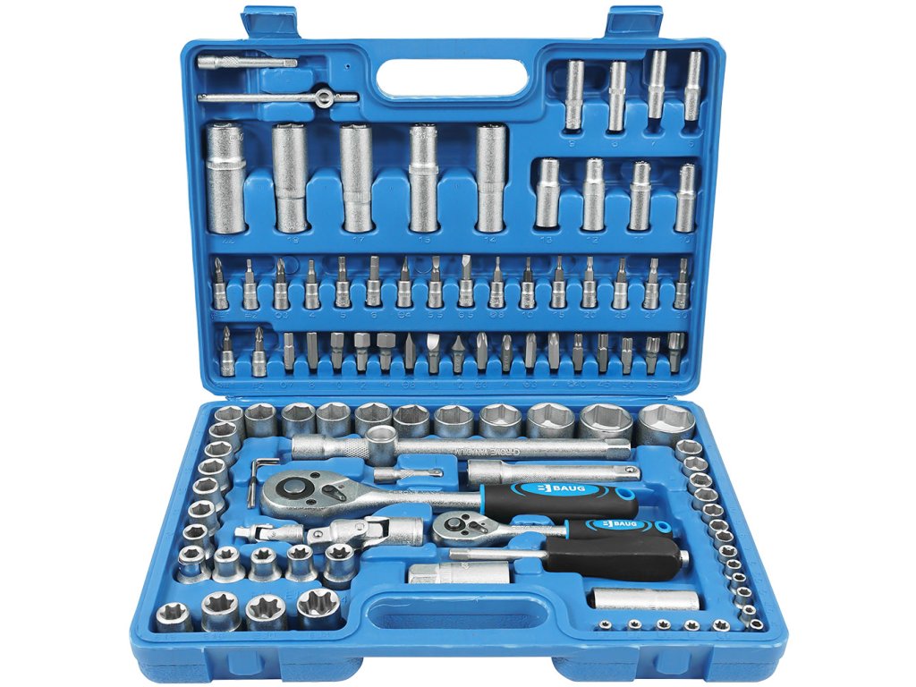 Gola sada 108 dílů, CrV BAUG je jedna z nejprodávanějších sad nástrčných klíčů z naší nabídky. Předurčuje to především poměr dobré kvality a dobré ceny. Sada obsahuje všechny běžné klíče, nástavce a páky, které potřebuje běžný uživatel.Obsah sady