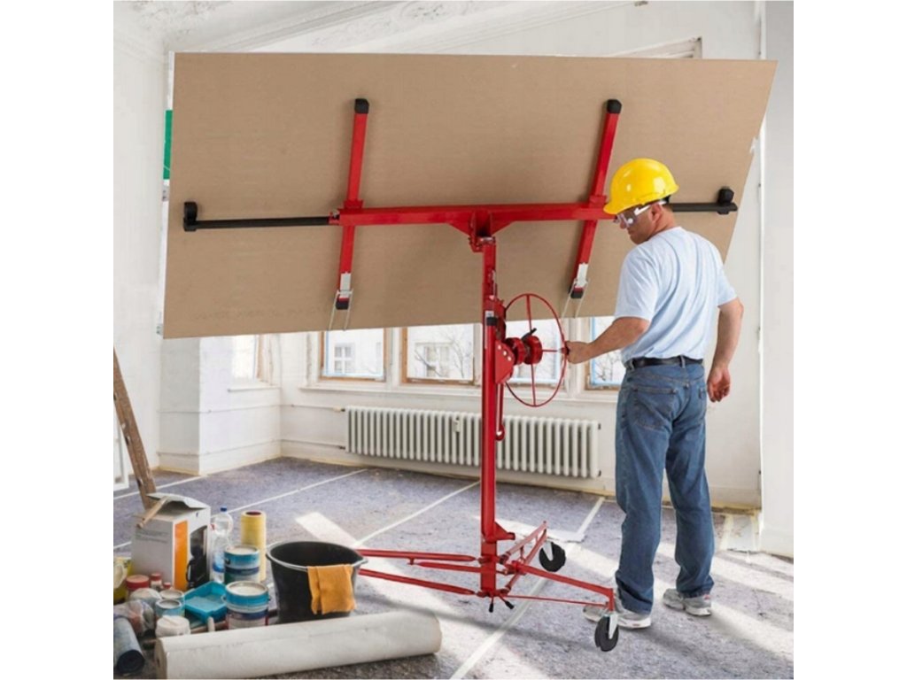 Ruční zvedák, určený ke zdvihání deskových materiálů, používaných při suché výstavbě v interiérech.(› rozsah zdvihu: 138 - 335 cm)
