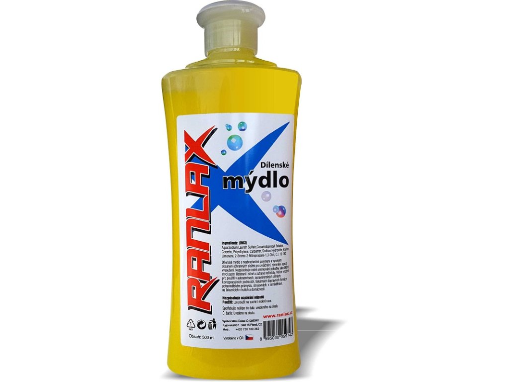 Tekuté Dílenské mýdlo RANLAXDílenské mýdlo RANLAX s neabrazivními polymery a vysokým obsahem ochranných složek pro zvláčnění, zjemnění a proti vysoušení. Nezpůsobuje ostré smirkování pokožky jako běžné mycí pasty. Odstraní i silné a zažrané nečistoty