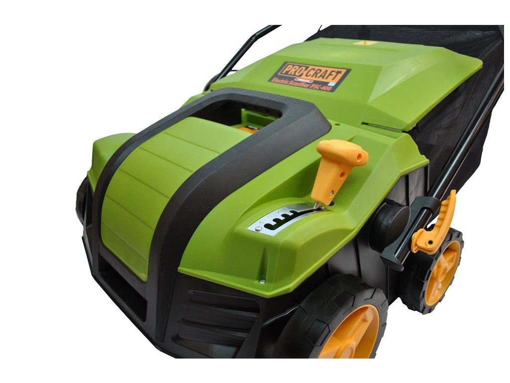 Elektrický vertikutátor Procraft PSC400 je určen k vertikutaci a ke zkvalitnění trávníku. Silný motor s příkonem 1800W a vysokých otáček až 3722 zaručuje dlouhou bezporuchovou práci. Sběrný koš o objemu 55 litrů, který pojme větší množství materiálu, čím ušetří váš čas. Centrální nastavení výšky ve 4 jednotlivých polohách na požadovanou úroveň. Součástí dodávky je válec. Balení karton.