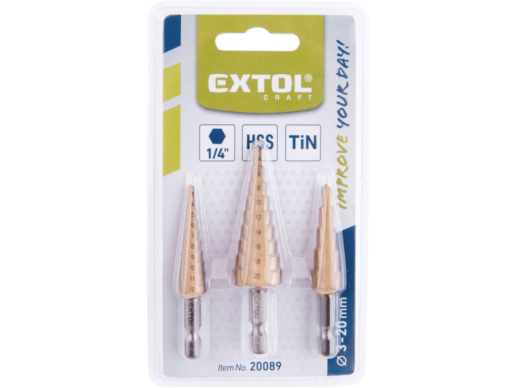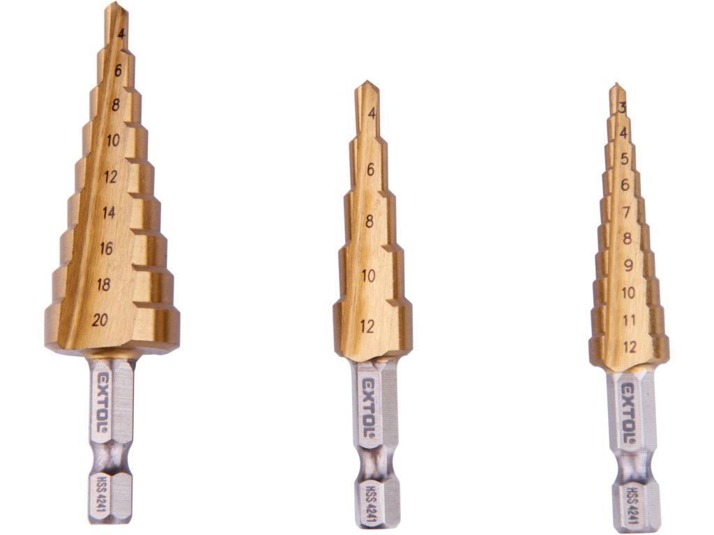 EXTOL CRAFT vrtáky stupňovité, sada 3ks, O 3-20mm, HSS 20089