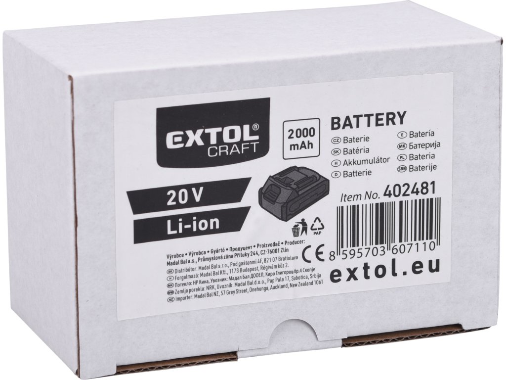 EXTOL ENERGY baterie akumulátorová, 20V Li-ion, 2Ah 402481