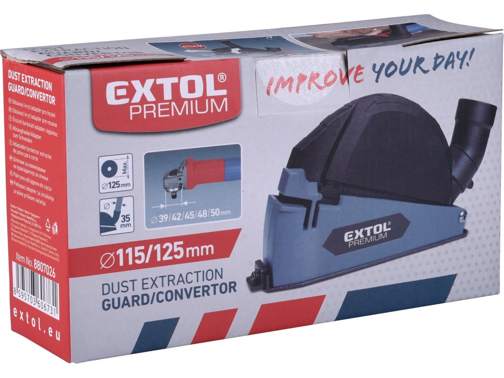 EXTOL PREMIUM kryt/adaptér odsávací pro řezání úhlovou bruskou, O115/125mm