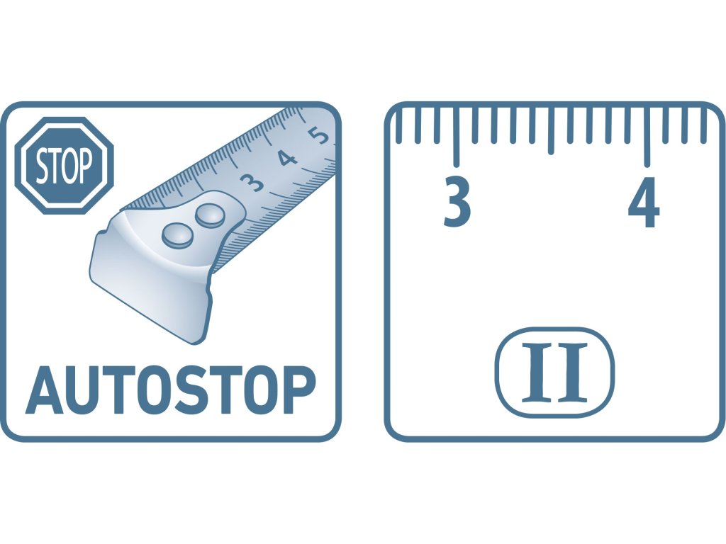 • autostop: pásek zůstává ve vysunuté poloze, stisk tlačítka způsobí automatické zasunutí
