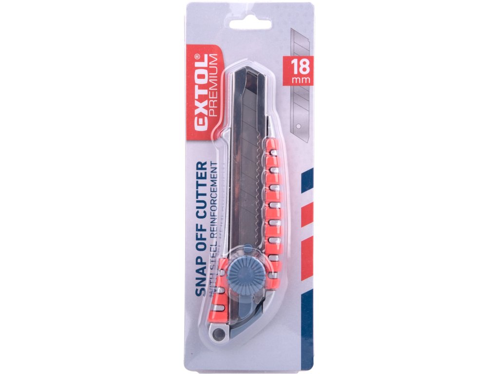 EXTOL PREMIUM nůž ulamovací s kovovou výstuhou a zásobníkem, 18mm Auto-lock 8855023