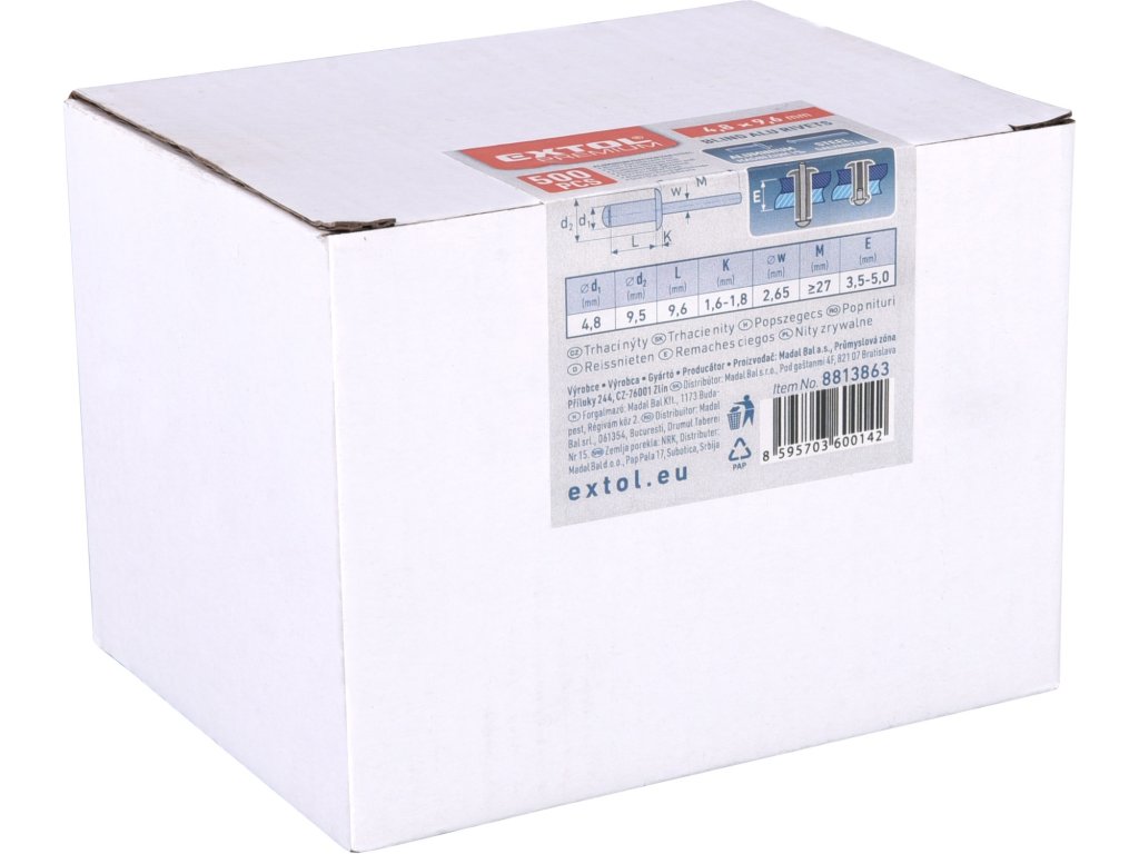 EXTOL PREMIUM nýty trhací hliníkové sada 1000ks, O 2,4x8mm plochá hlava 8813832