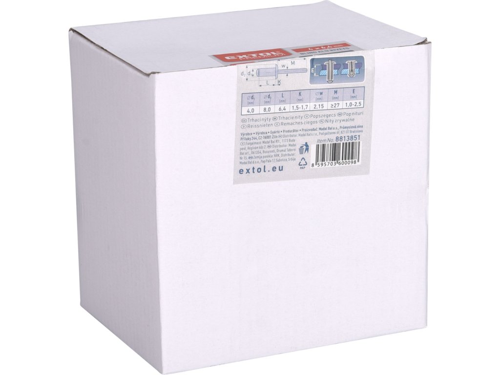 EXTOL PREMIUM nýty trhací hliníkové sada 1000ks, O 4,0x6,4mm plochá hlava 8813851
