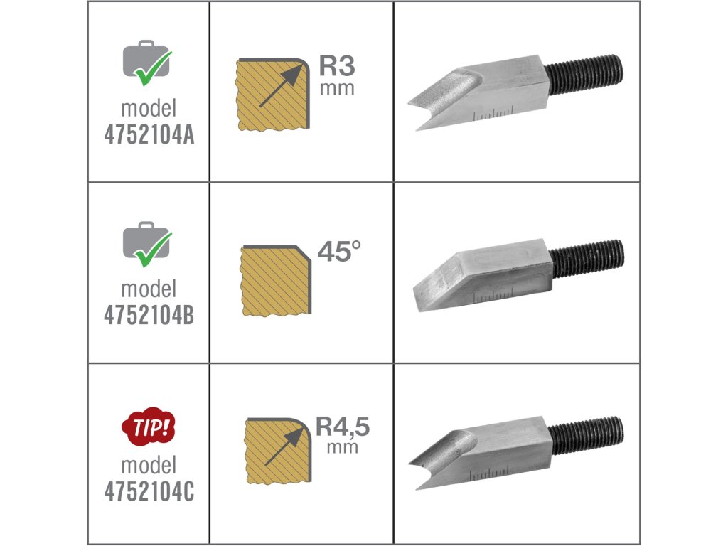 • celokovové provedení s nastavitelnou hloubkou nože při úběru materiálu (srážené/začišťované hrany)