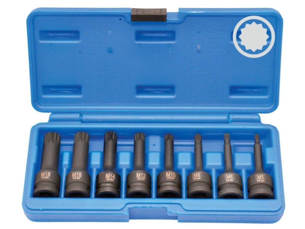 Genborx JBTK 408-M Zástrčné hlavice XZN M5-M18 gola ořechy sada 8 kusů kované