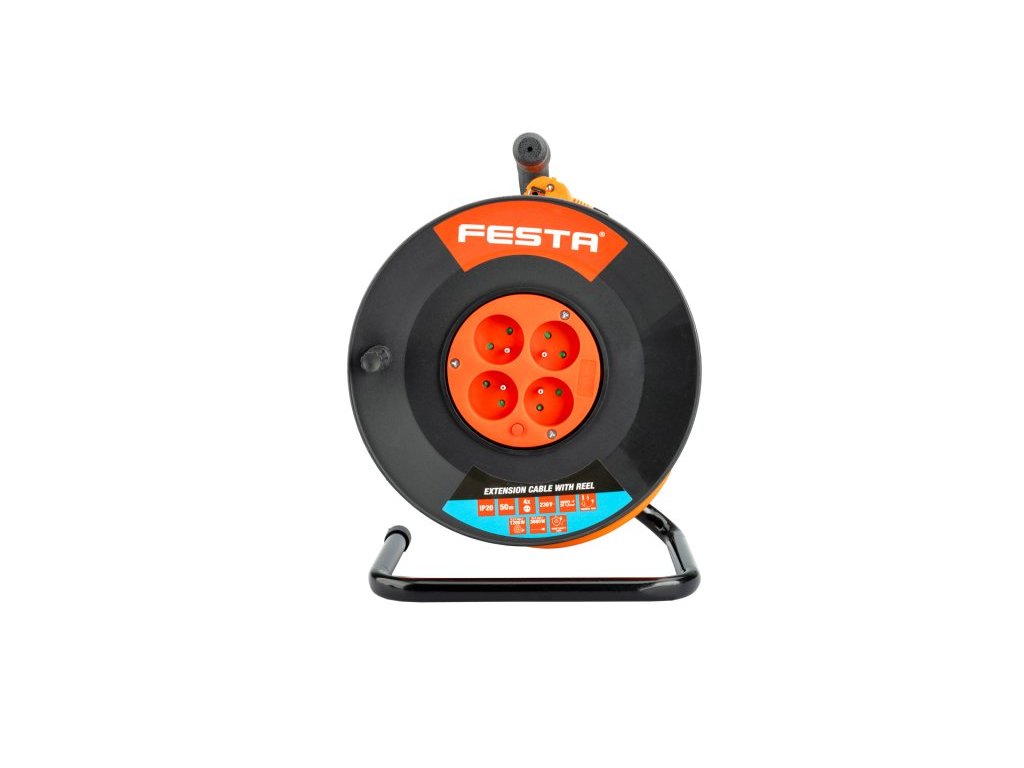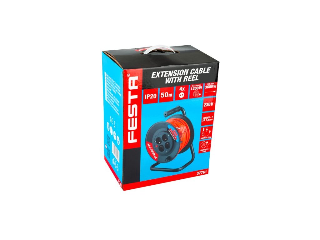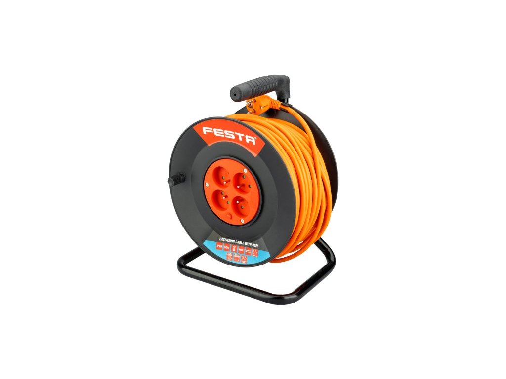Kabel prodlužovací na bubnu FESTA 50m 4zásuvky 3x1.5mm IP20 MAX 3680W