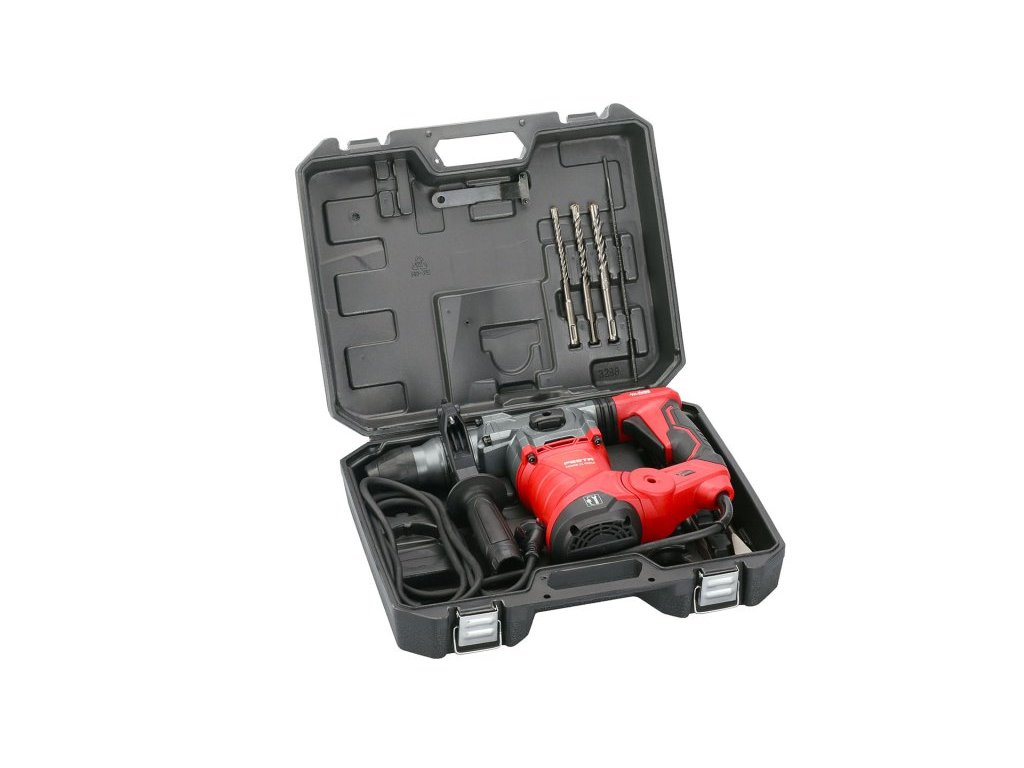 - kladivo je dodáváno v praktickém kufru včetně příslušenství - vrtáky SDS+ 8. 10, 12 x 160 mm, sekáče SDS+ plochý 20 x 250 mm a špičák 250 mm, hloubkový doraz, náhradní uhlíky (samostatně objednatelné pod číslem 28228)