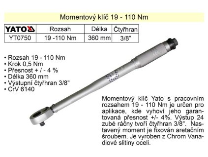 Momentový klíč ohybový 19 - 110 Nm 3/8" Yato