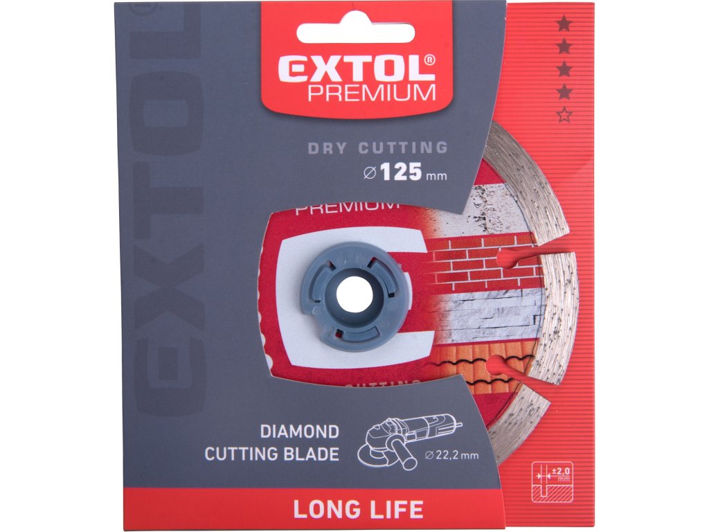 Řada diamantových řezných kotoučů LONG LIFE s prodlouženou životností pro profesionální a poloprofesionální použití. Díky složení diamantové směsi a výšce segmentu mají kotouče až o 50% větší řezný výkon než ostatní Extol Premium kotouče.Technické parametry: