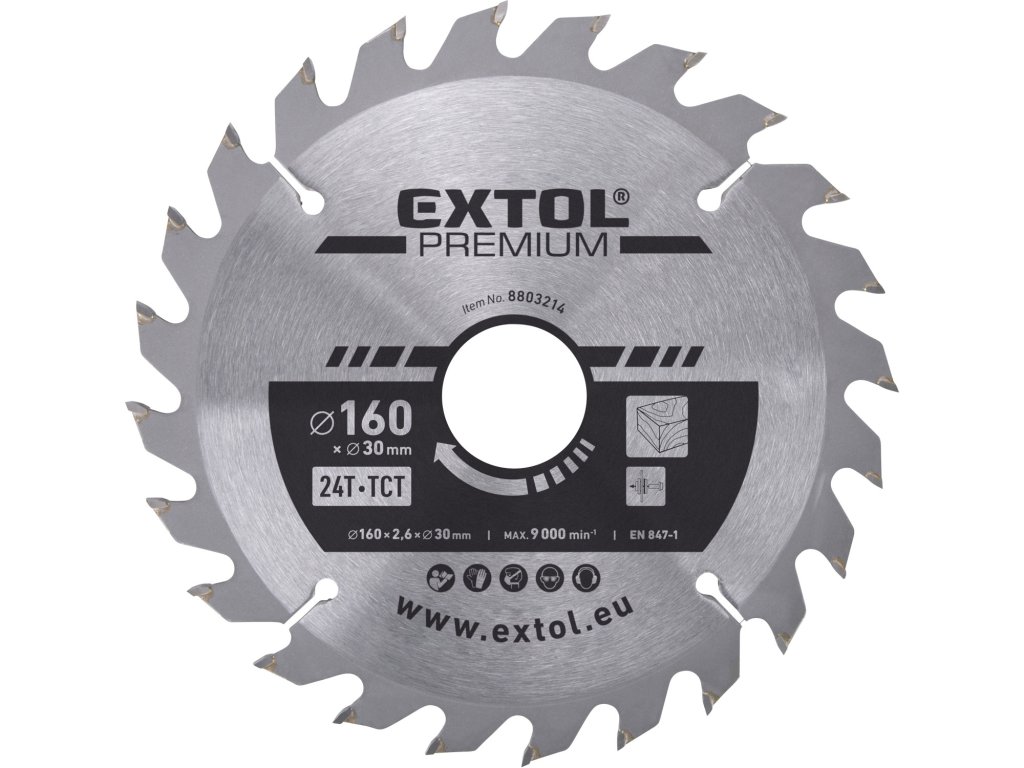 kotouč pilový s SK plátky, 160x2,0x30mm, 24T, šířka SK plátků 2,8mm, SK, EXTOL PREMIUM