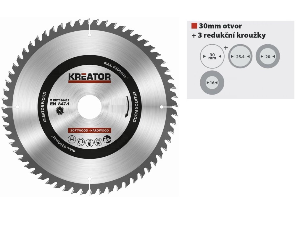 KREATOR kotouč pilový s SK plátky, 165x2,2x30 (+redukce 16/20/25,4mm), 48T zubů