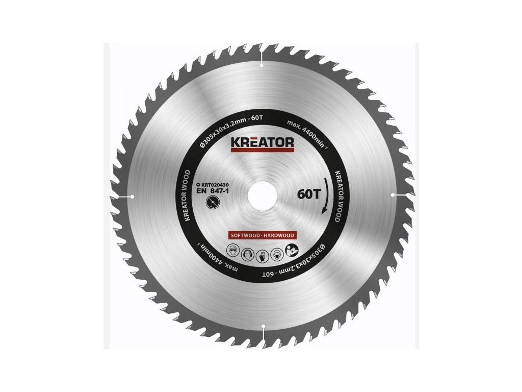 KREATOR pilový kotouč na dřevo 315x3,2x30x60z (+redukce 25,4/20/16mm)