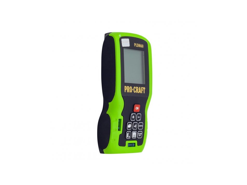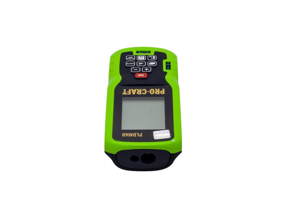 Laserový dálkoměr Procraft PLDM60 je určen k přesné měření vzdálenosti s rozsahem až 60 m. Možnost uložení 20 posledních měření do paměti a automatické odečítání a sčítání délek usnadní a zrychlí práci. Dopočítávání pomocí Pythagorovy věty umožňuje výpočet výšky v nepřístupných místech. Součástí dodávky jsou 2 baterie 1,5 V LR03 (AAA), ochranné pouzdro. Balení karton.