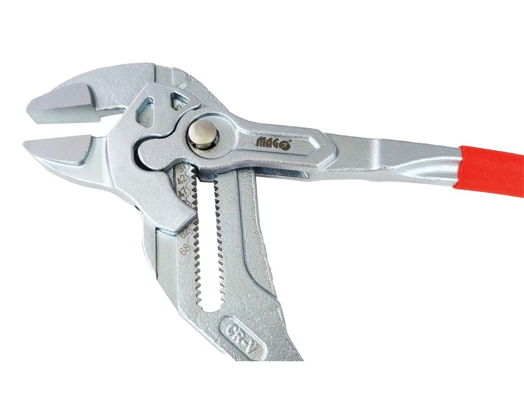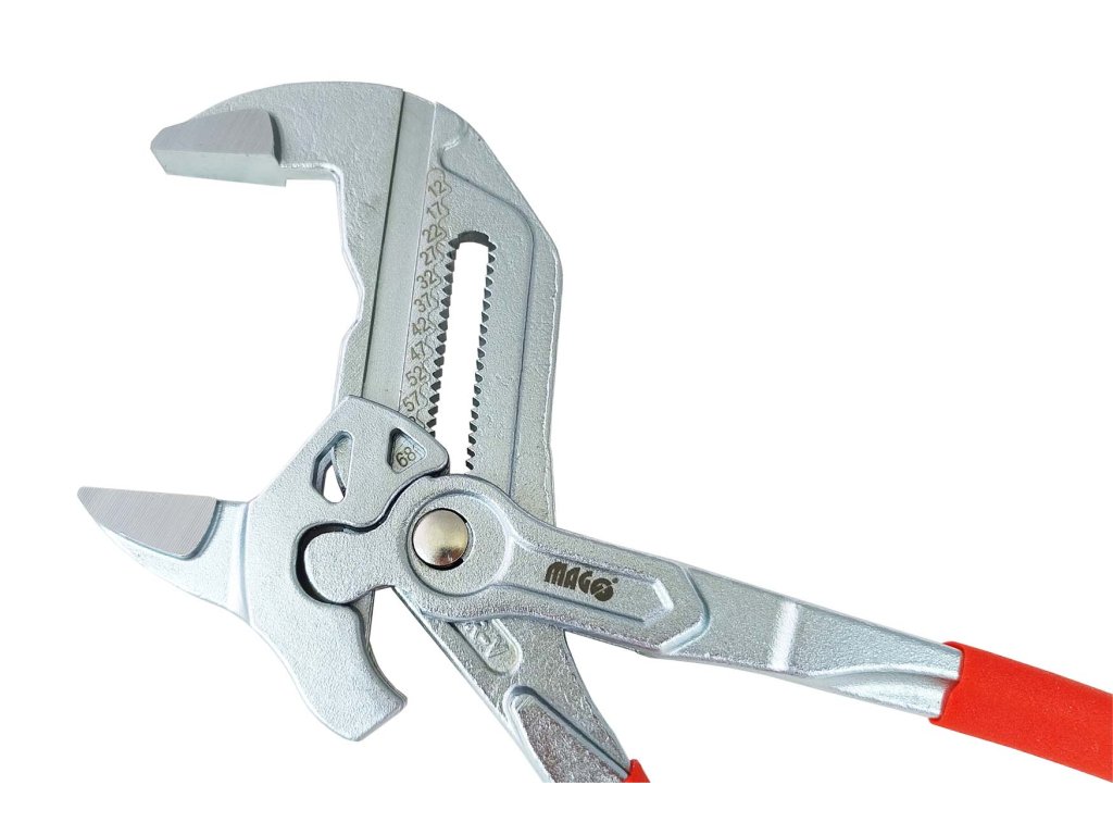 Klešťový klíč MAGG s rychlým nastavením a maximální přesností pro práci v náročných podmínkách. Ideální pro instalatéry, údržbáře i průmyslové použití. Díky rychlonastavitelné konstrukci umožňují snadné přizpůsobení velikosti čelistí bez zbytečného úsilí. Pogumované rukojeti zajišťují komfortní a bezpečný úchop.Technické parametry:
