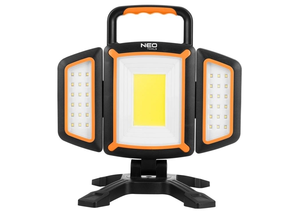 NEO TOOLS Aku světlo LED reflektor 2000lm, USB nabíjecí, se stojanem a powerbankou