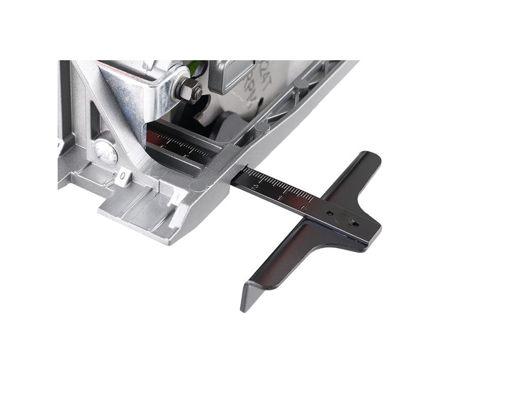 - bezpečnostní pojistka spínače proti náhodnému spuštění, ergonomicky tvarované úchopvé části pily pro pohodlné držení a manipulaci při práci, bezpečnostní samozavírací kryt kotouče, umístění ovládacích prvků uzpůsobené pro pravou i levou ruku, základna doplněna o dorazovou lištu pro rovné přímé řezy, možnost napojení odsávání