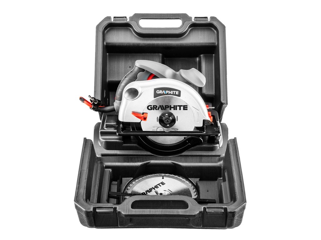 Kotoučová pila Graphite 58G488 je s funkcí precizních šikmých a rovných řezů výborným doplňkem do dílny. Pilový kotouč s průměrem 185 mm využívá výkon 1200 W k maximálním otáčkám 5000 min-1. Napájení je ze sítě 230 V 50 Hz s třídou ochrany II. Rozsah řezání zařízení pod úkosem je od 0° -45°. Maximální tloušťka řezaného materiálu v úkose je 43 mm a pod pravým úhlem 65 mm. Okružní pila disponuje krytem z protiskluzového materiálu, tlačítkem proti nechtěnému spuštění a možností uzamčení vřetene k rychlé výměně nástrojů. K jednoduché manipulaci slouží praktický kufr.Technické údaje: