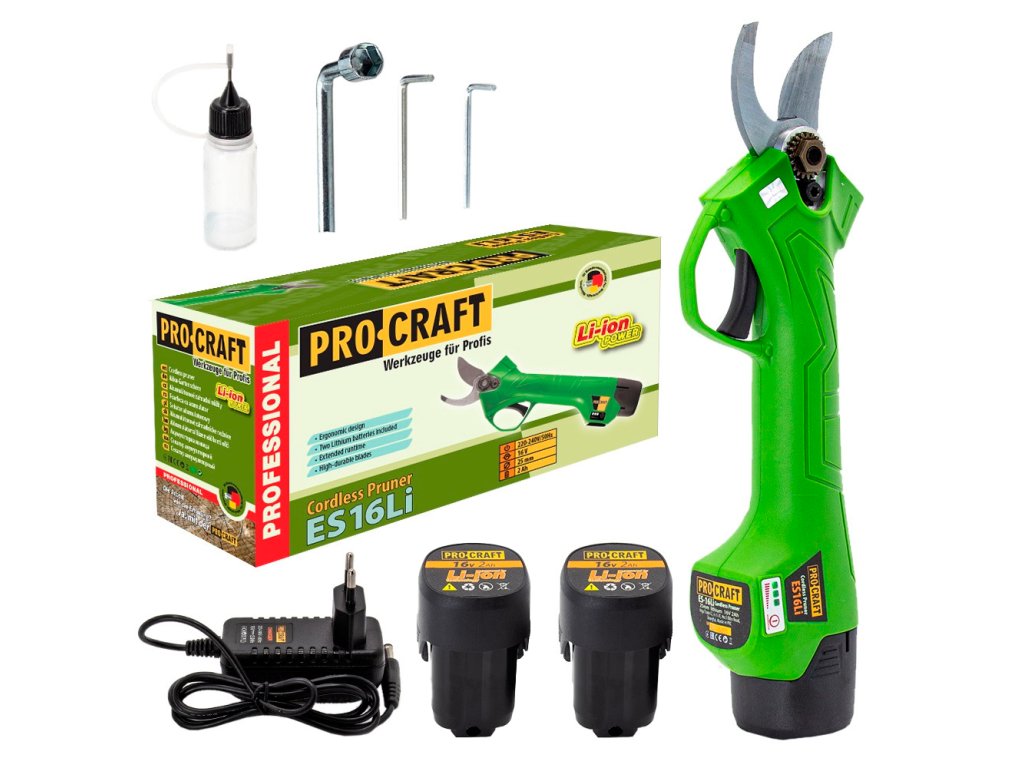 PROCRAFT Aku nůžky na větve a vinnou révu 16V 2x2.0Ah ES16Li