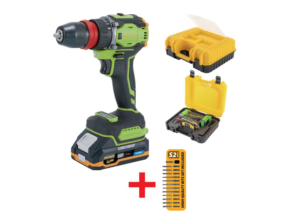 PROCRAFT PA18BL Aku vrtačka s příklepem 50Nm, bezuhlíková 20V 2x4.0Ah