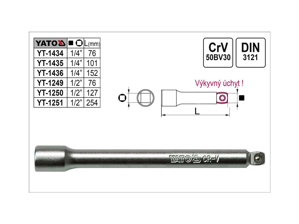Kvalitní prodlužovací nástavec 1/2" délky 127 mm umožňující mírný výkyv ořechu (náklon).