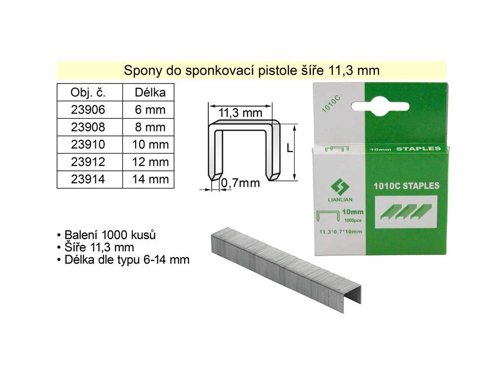 Spony do sponkovačky šíře 11,3 mm hranaté délka 12 mm balení 1000 kusů