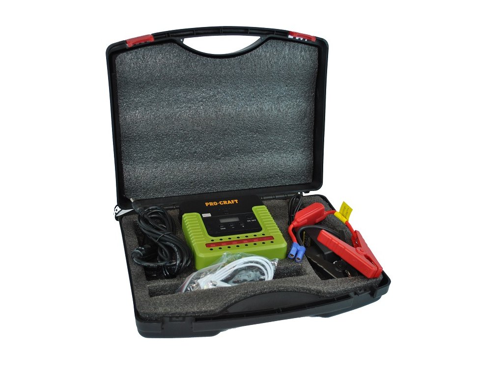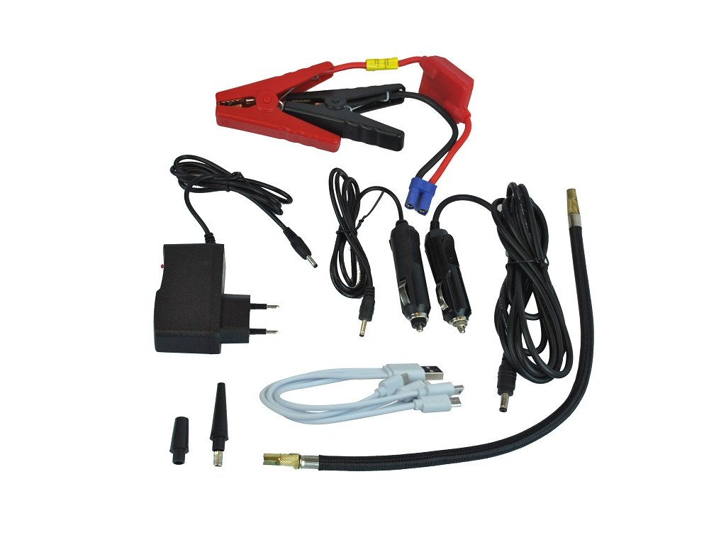 Pro pohodlné uložení ve vozidle nebo při přepravě se přístroj dodává v praktickém plastovém kufříku. Lze ji použít k uložení samotné startovací nabíječky i jejího rozsáhlého vybavení, které zahrnuje svorky autobaterie, hadici pro huštění kol, síťovou nabíječku a nabíječku do zapalovače, jakož i sadu konektorů pro mobilní zařízení a kabel do zapalovače pro huštění kol.