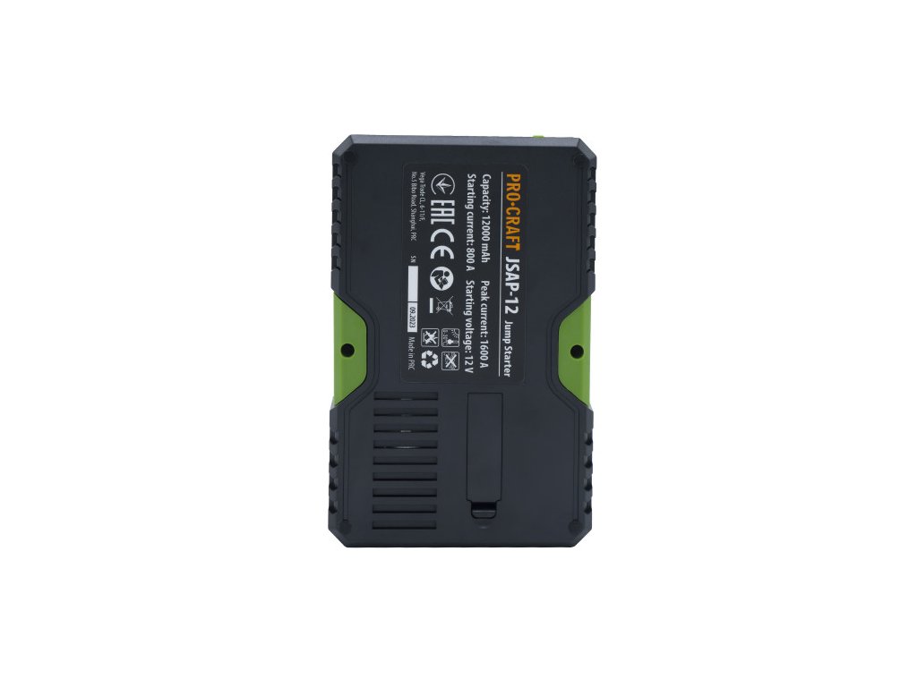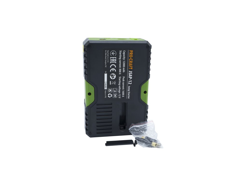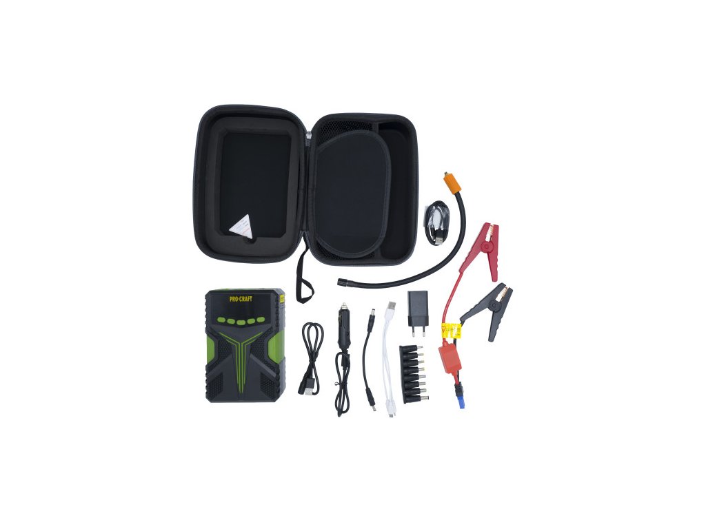 Startovací zdroj s funkcí kompresoru - pracovní tlak 3,5 bar, power banky, LED svítilny a LED výstražné svítilny. Kompaktní záložní zdroj elektrické energie pro případ nouzového statování vozidla, dobíjecí zdroj mobilního telefonu, tabletu nebo noteboku - nouzová výstražná svítilna. Součástí balení je sada startovacích kabelů, redukcí a adapterů pro připojení dalších zařízení. JSAP-12NE zvládne při plném nabití nastartovat vozidlo s el. rozvodem 12V a se zdvihovým objemem motoru do 8000cm3.