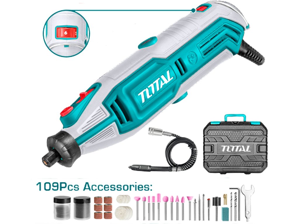 Tato minibruska je určena pro vrtání, řezání, broušení, frézování a leštění dřeva, kovu, plastu a kamenů. Toto nářadí je určeno pro lehké práce, jako jsou gravírování, výroba modelů, kutilské práce atd. Minibruska má v základu 109ks příslušenství, ohebný prodlužovací nádstavec a je zabalena v kurfu.