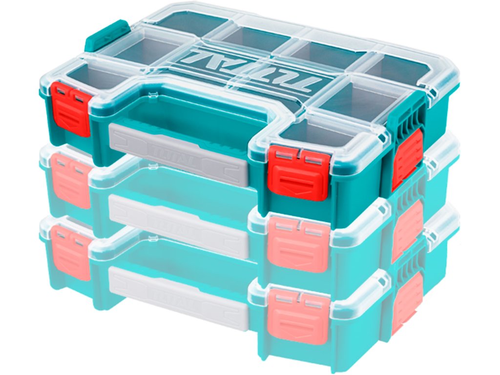 Plastový organizér, Velikost: 305 mmx230 mmx65 mm, Lze skládat dohromadyMateriál: PP, Odnímatelné přepážky, Baleno v kartonové krabici.