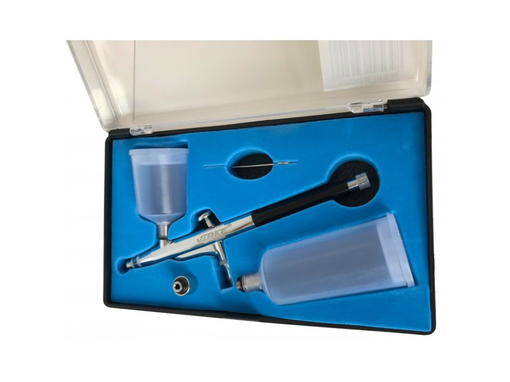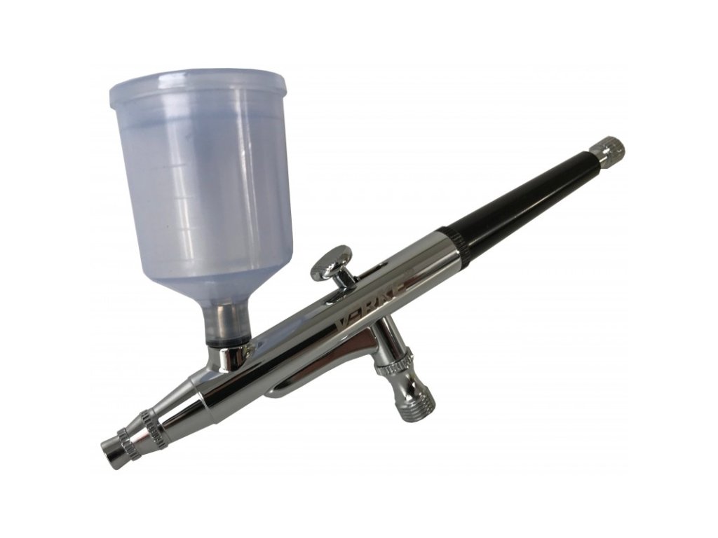 Airbrush – mini stříkací pistole se používá jak pro malování rovných ploch, tak i tvarově složitých předmětů. Umožňuje malovat přesné detaily. Používá se při retuši, konzervaci, modelování, ručním zdobení drobných předmětů i jako výtvarná technika (airbrushing).Velmi vysoká přesnost nanášení barvy, profesionální provedení, tryska z kvalitní nerezové oceli zajišťující dlouhou životnost pistole, nízká hmotnost a velikost, dvojité nastavení nástřiku, výborná kvalita, vyrobeno z korozivzdorné oceli.