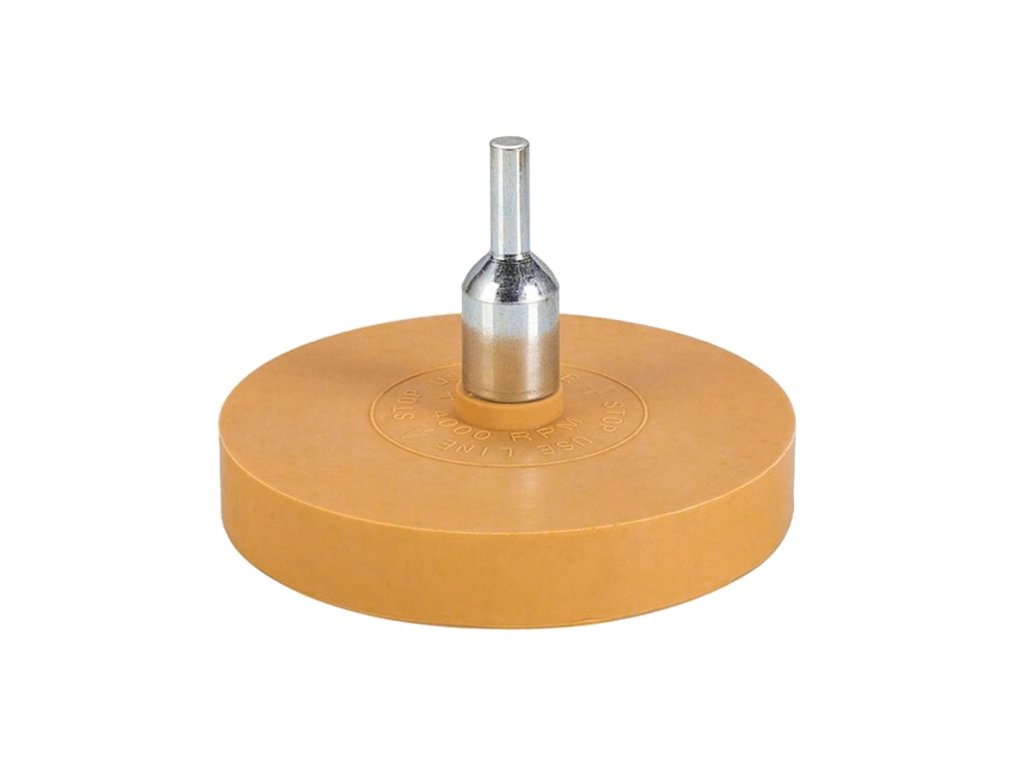 Kotouč k odstranění samolepek, lepidel a dalších nečistot z laku bez jeho poničení. Kotouč je opatřen trnem s průměrem 6 mm k upnutí do vrtačky apod.• Kotouč na samolepky a lepidla má průměr 88 mm a tloušťku 15 mm.