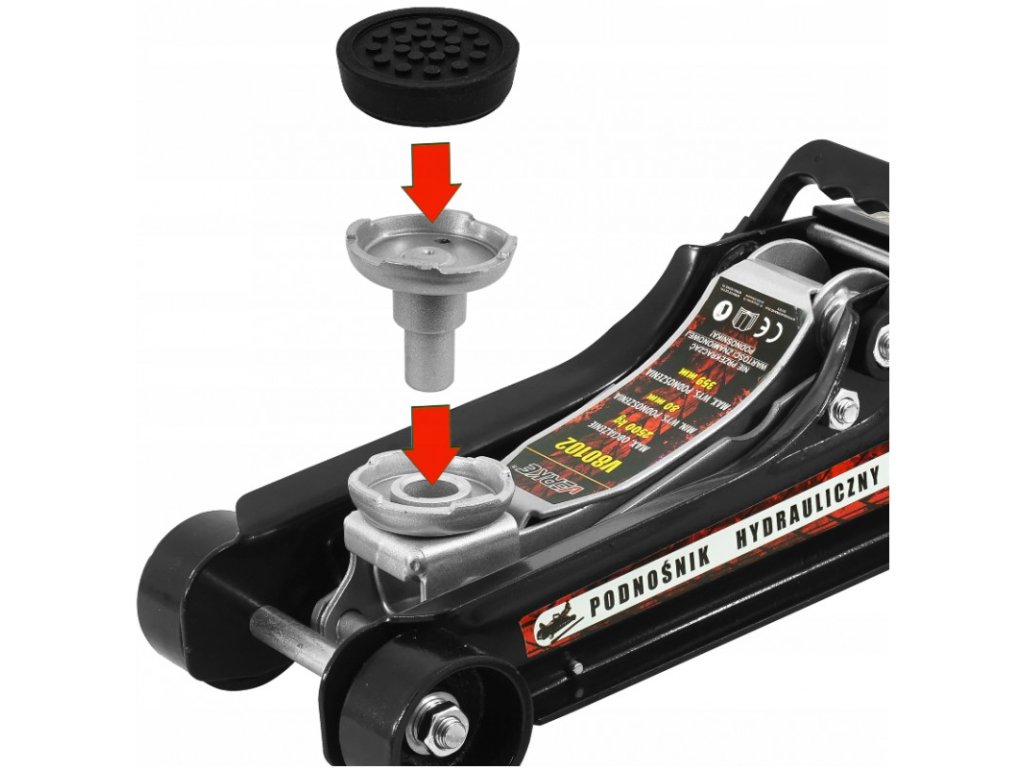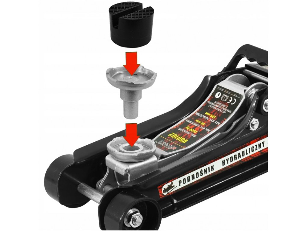 Nízkoprofilový hydraulický zvedák o nosnosti 2500kg. Nízký profil je předurčen pro sportovní automobily a auta se sníženým podvozkem• Nosnost 2500kg