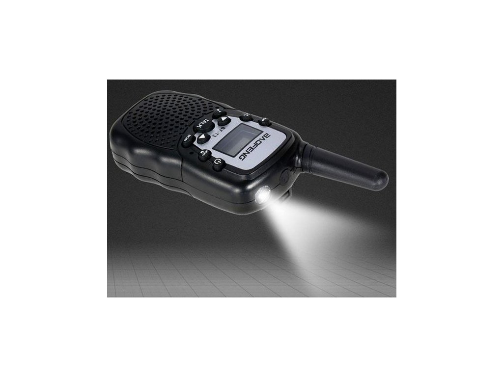 Vysílačky s dosahem až 3 km, podsvícený LCD displej, 22 kanálů, hlasový vox, vestavěná LED svítilna, úsporný režim.Technické parametry: