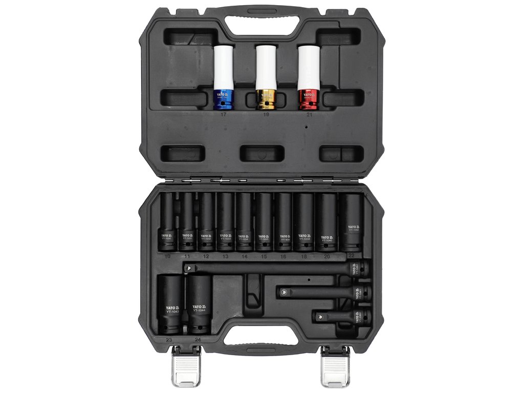 YATO Gola ořechy šestihranné kované prodloužené 1/2" sada 18 kusů 10-24mm + nástavce