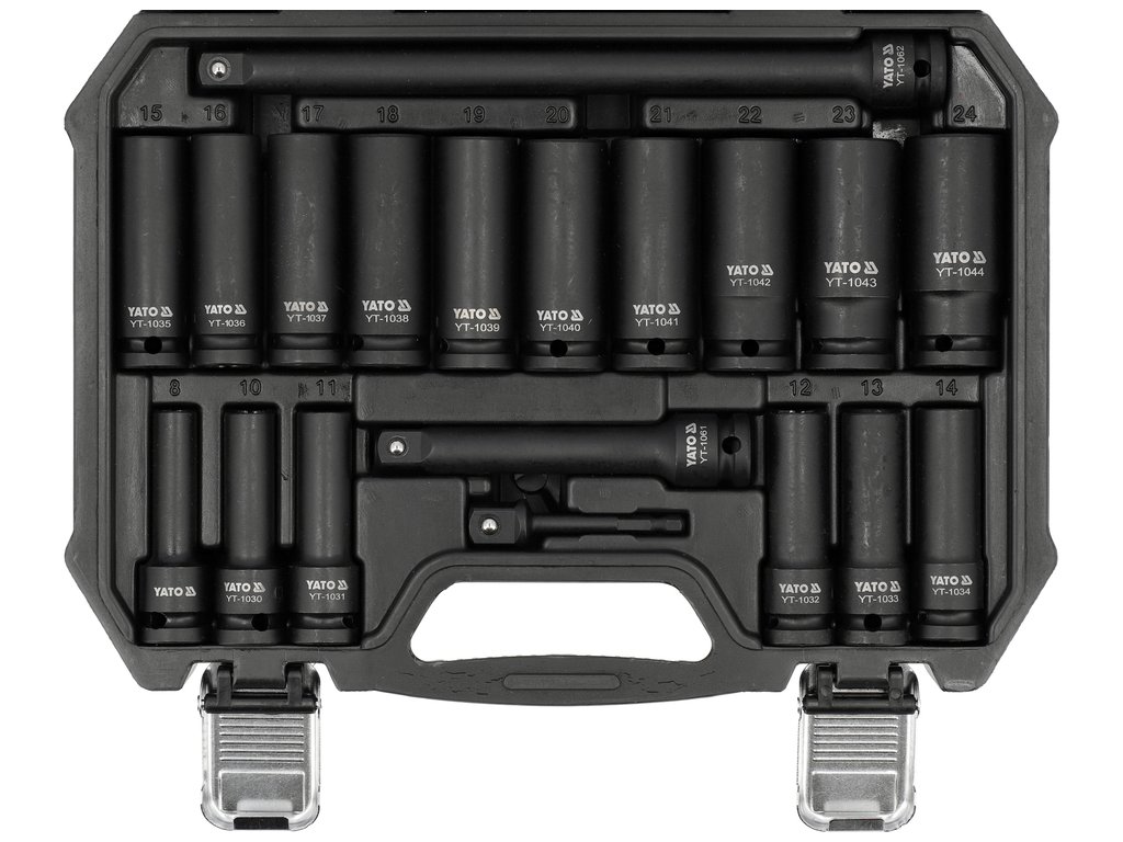 YATO Gola ořechy šestihranné kované prodloužené 1/2" sada 19 kusů 8-24mm + nástavce