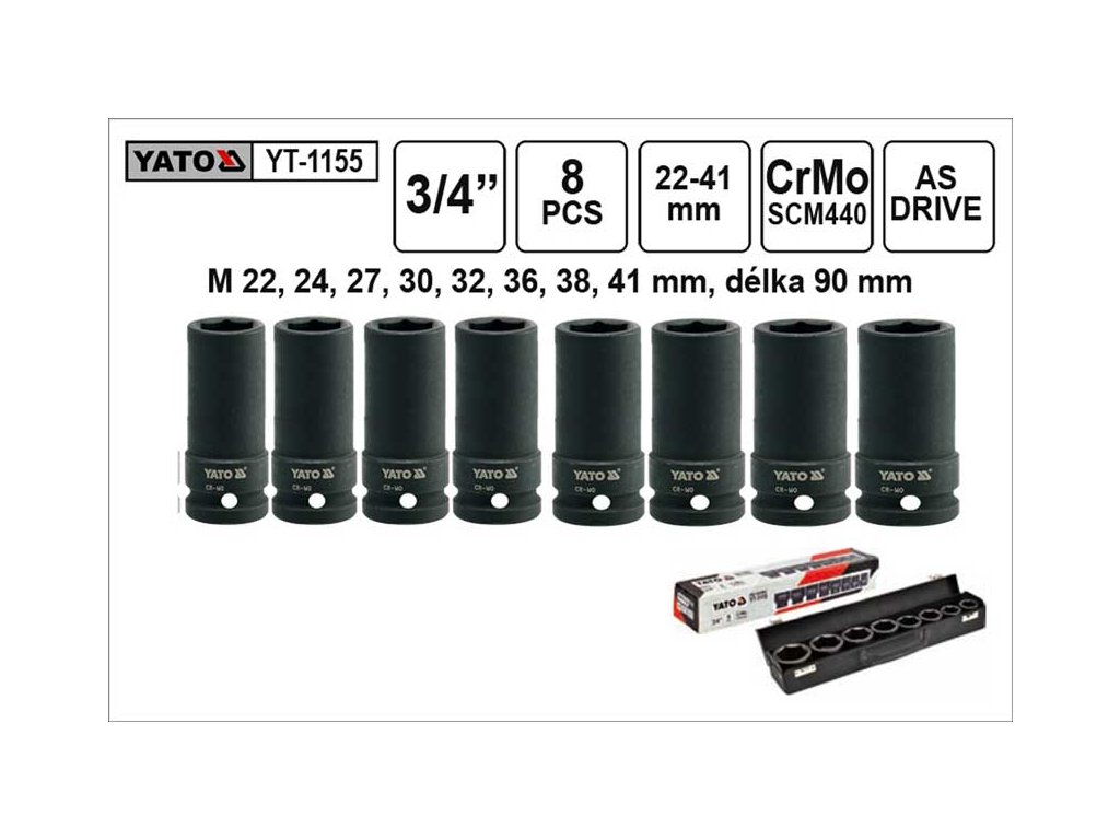 YATO Gola ořechy šestihranné kované prodloužené 3/4" sada 8 kusů 22-41mm YT-1155
