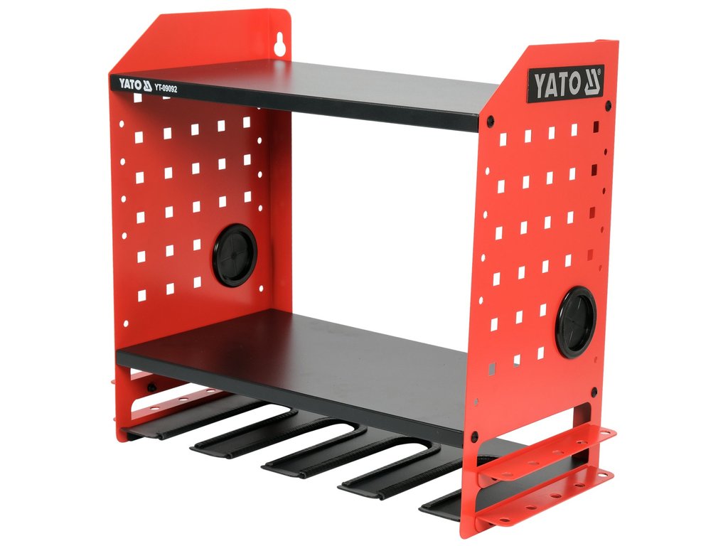 YATO Nástěnný držák na aku nářadí, skříňka s policí