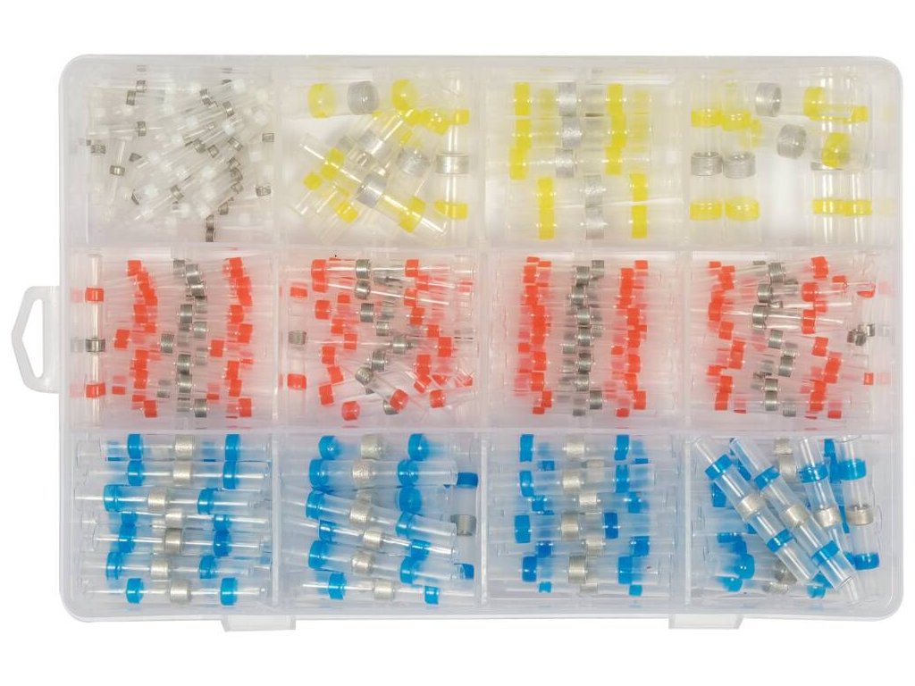 Čiré teplem smrštitelné bužírky s cínovým kroužkem uprostřed a dvěma tepelně lepicími kroužky po stranách pro další utěsnění spoje.• pro průřez vodiče: 0,25-6 mm2, 24-10 AWG