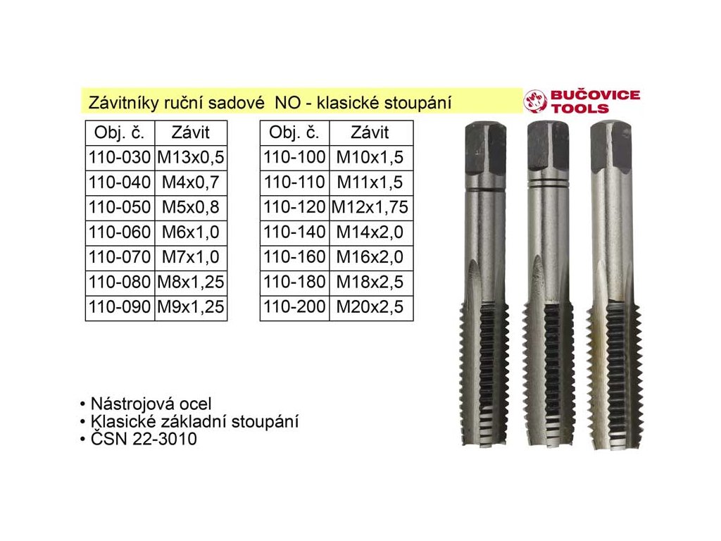 Sadové závitníky s klasickým závitem, sada 3 kusy 1° / 2° / 3° vyrobených z nástrojové oceli (NO) od Českého výrobce Bučovice Tools .• Závitníky ruční sadové M14x2,0 NO